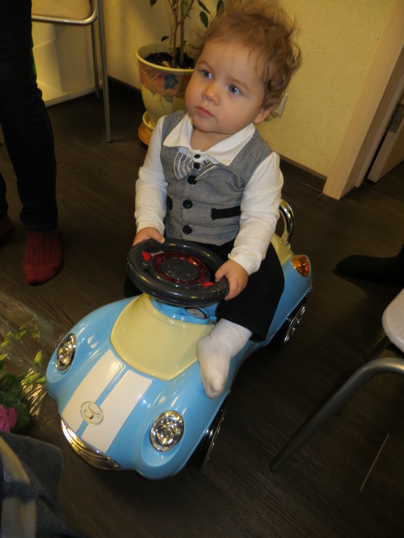 Самым удачным оказалась машина -каталка. Каталка хорошая. У нее такие колесики бесшумные, красота! Но, как мама с опытом могу сказать, что намного удобнее брать каталки с ручкой сзади. Потому что кататься сам он еще не скоро сможет, а гнуть спину и его катать очень напрягает))) А, так красивая и бесшумная и мелодии поет)