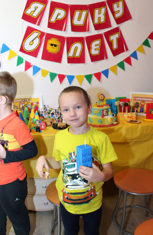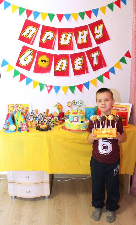 Просто невероятно! У нас 13 декабря ДР и как раз дарим большой набор Лего город на 6 лет. Ваш пост прям в руку!Подскажите а надпись натяжная с днем рождения шаблонная? как ее найти? и на голову колпоки тоже сами делали?