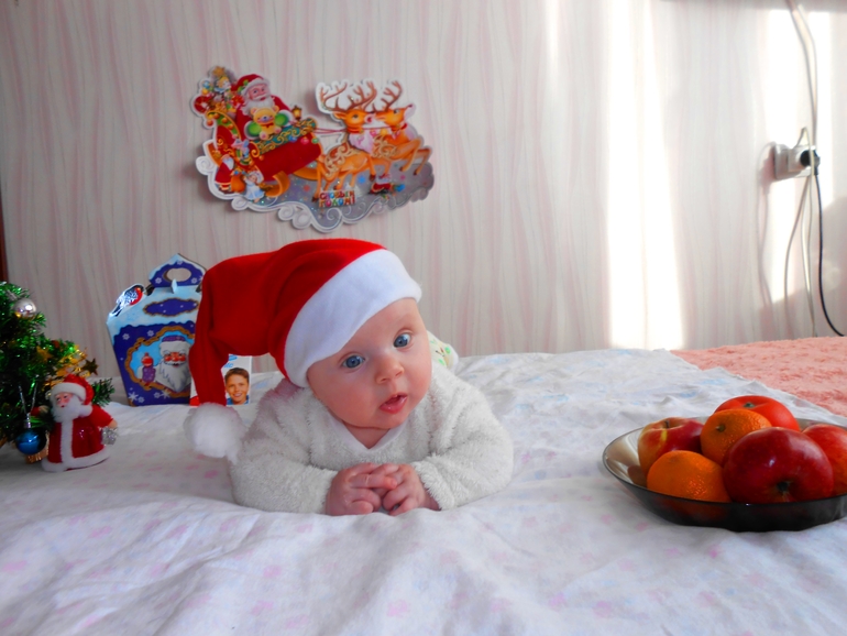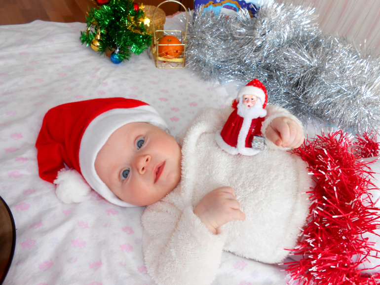 . В прошлом году моей малышке было только 4 месяца, а ярких новогодних фоток с ней ну уж очеень хотелось...