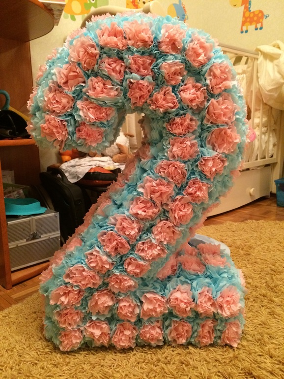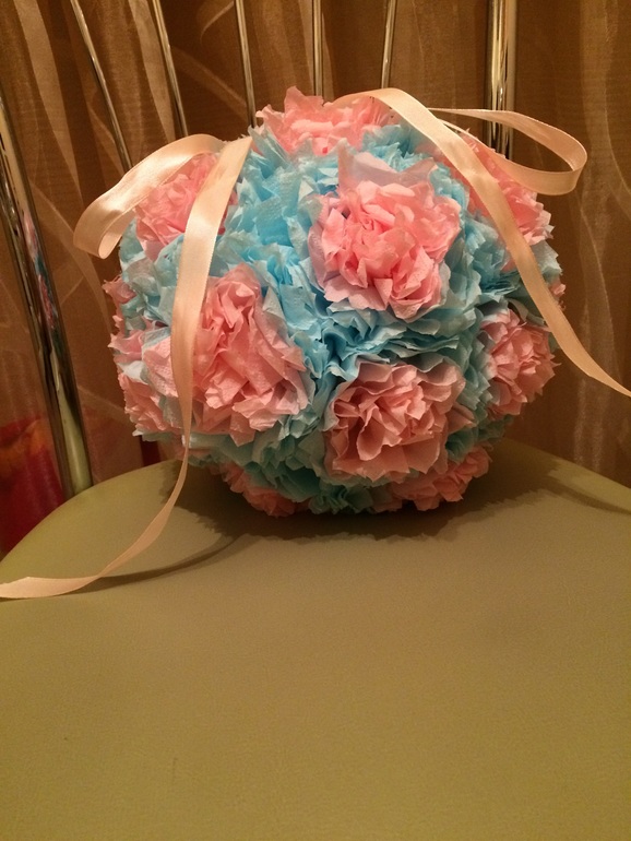 Оформление праздникаОстались цветочки псле декорирования циферки и решила сделать шарик))