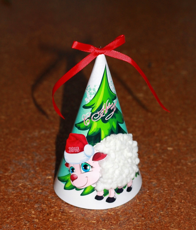 Новый ГодДолго думала чтоб такого сделать ,да и чтоб дочу задействовать и вот что получилось.Шарики из ваты катали и клеили вместе(шапочка клеилась отдельно на 2ух сторонний скотч.Если кто захочет такой же колпачек пишите,скину макет для печати