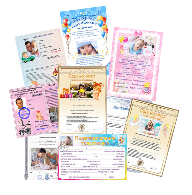 День рождения ДетскийЧем еще можно порадовать именинника и гостей на празднике? Подарите шуточный сертификат с забавным текстом и фото.