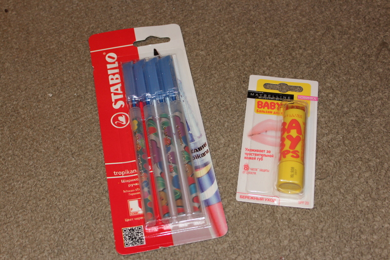 еще дочкам достался бальзамчик для губ, мы им уже пользуемся и набор разноцветных и поэтому очень нужных девочкам ручек)