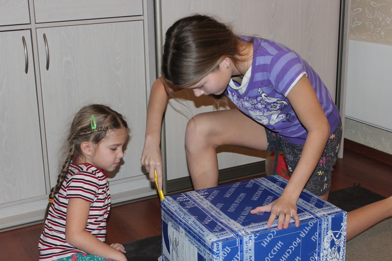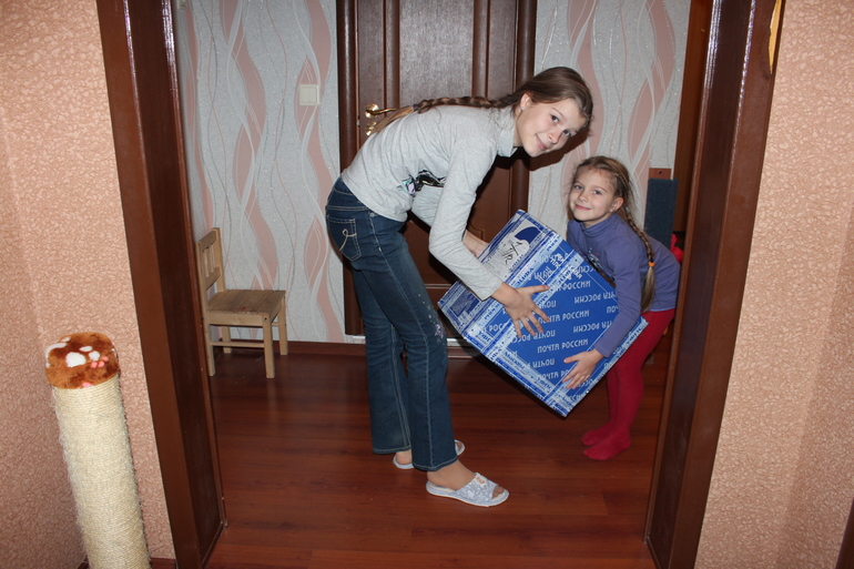 я честно пыталась не дать детям открыть огромный почтовый короб, но так как забирали мы его вместе с почты, то детки взяв в помощь мужа уломали меня и до Нового года посыль не дожила))
