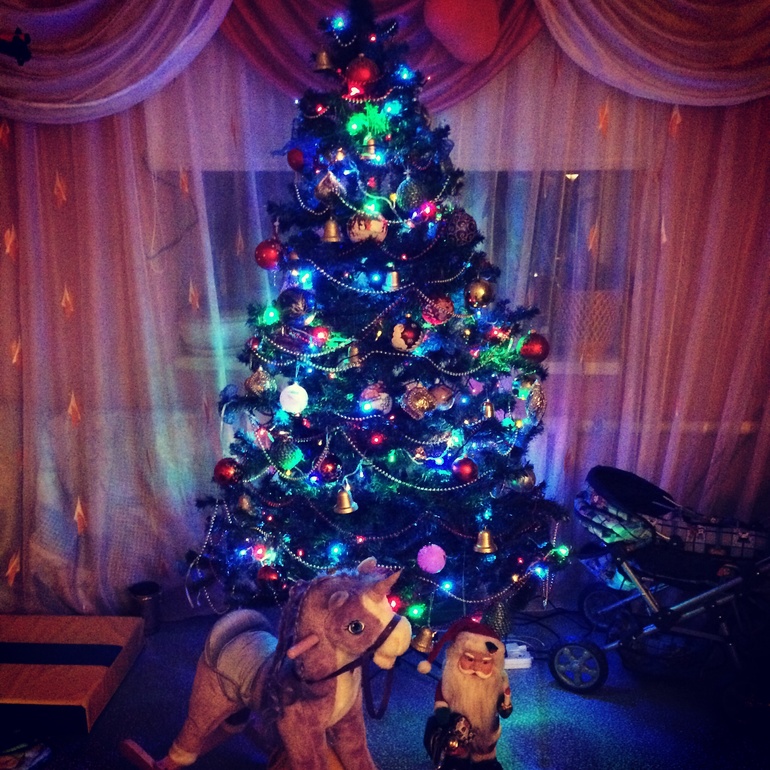 Новый ГодНаконец Арина дождалась,сегодня мы нарядили елочку.Счастливый ребенок,сама вешала шарики,играла с бусами.В итоге когда нарядили елку,включили огоньки,и Ариша под них уснула