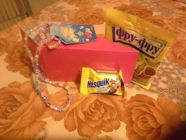 А это процесс приготовления. Сначала сделала сами кусочки из картона, потом разложили в них сладости и маленькие сувениры и всё заклеили. Для мальчиков-маленькие динозаврики, а для девочек - браслет и бусики. Чтобы отлечить кусочки, на них сверху наклеили наклейки))