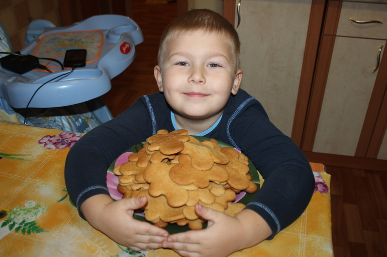 Славик был моим главным помощником... Печенья получилось много... Делали сразу аж две порции. Сначала напекли...