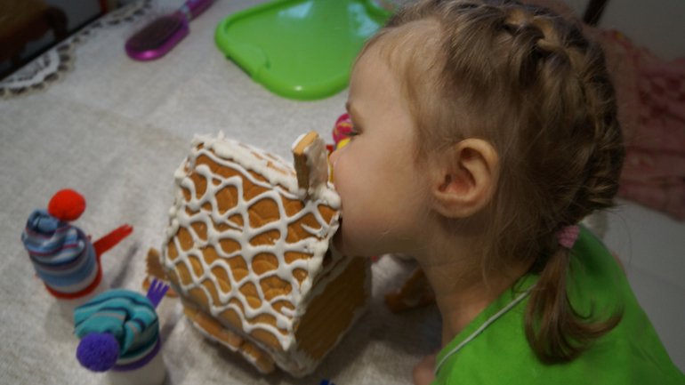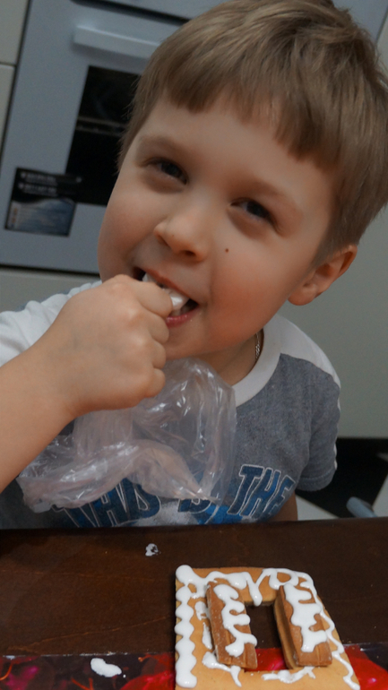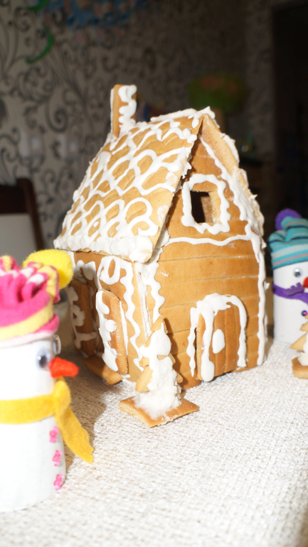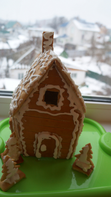 И еще мы испекли пряничный домик!!!! Это наш ПЕРВЫЙ!!!! Конечно не идеальный, но нам очень всем полюбился!