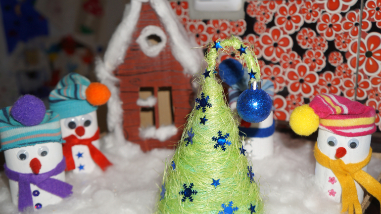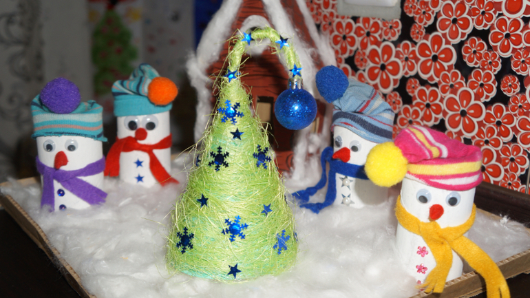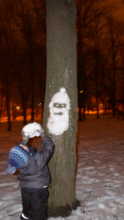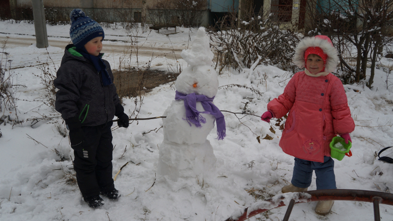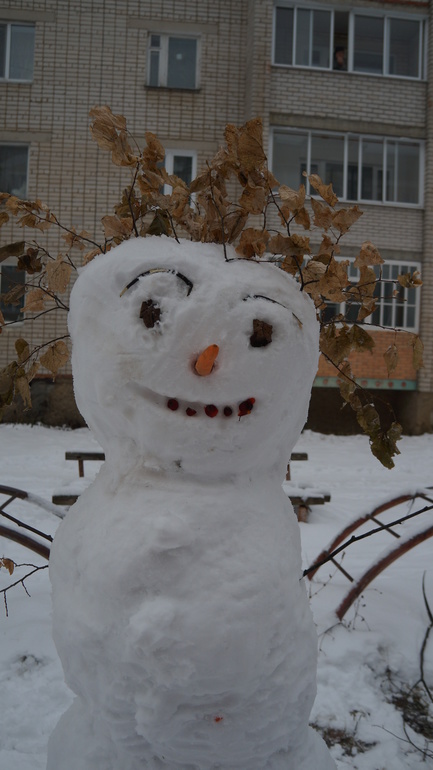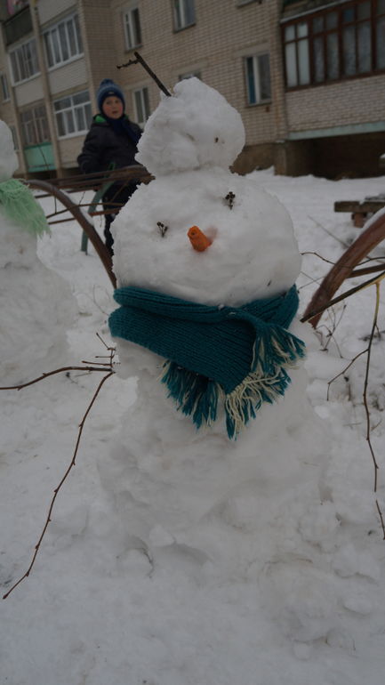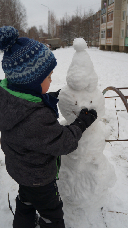 Елисею так понравились снежные шапки ,что потом все снеговики у нас были в них!