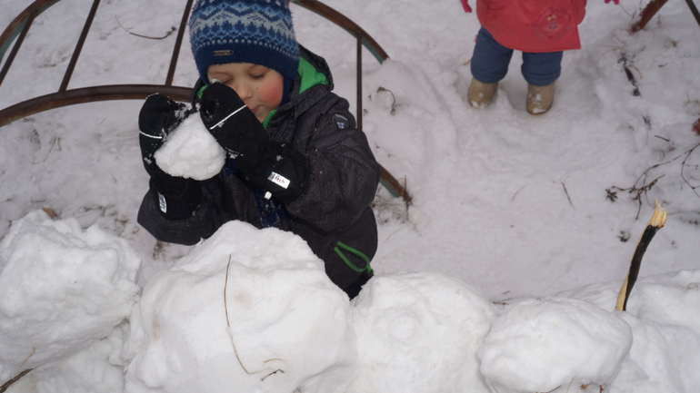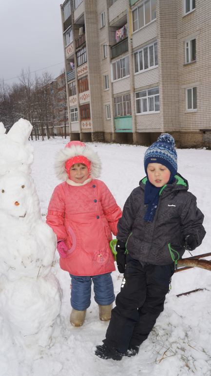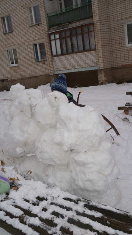 На этом наши снеговики закончились, Елисей решил что ему нужна крепость! и все быстро трансформировалось!