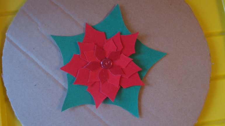 Далее собрали цветочки, наложив друг на друга красные детали в порядке уменьшения размера: