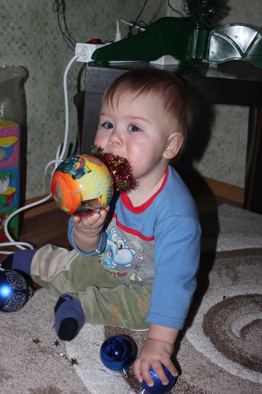 Каждую игрушечку Темик попробовал на зубок.... Сам весь блестел, как игрушка...