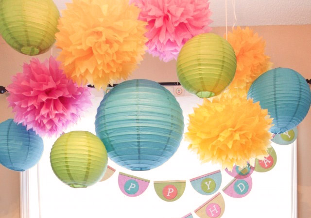 День рождения Детскийбумажные шары или помпоны в цветах белый синий красный. Нужно не много.