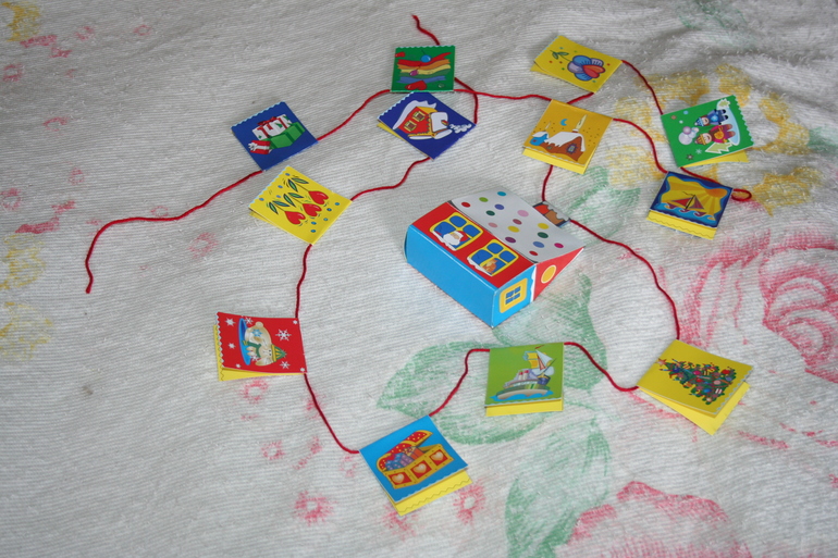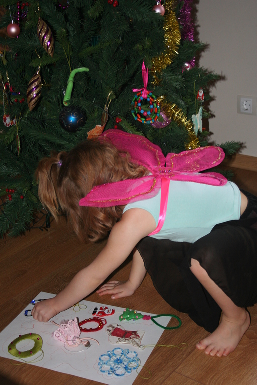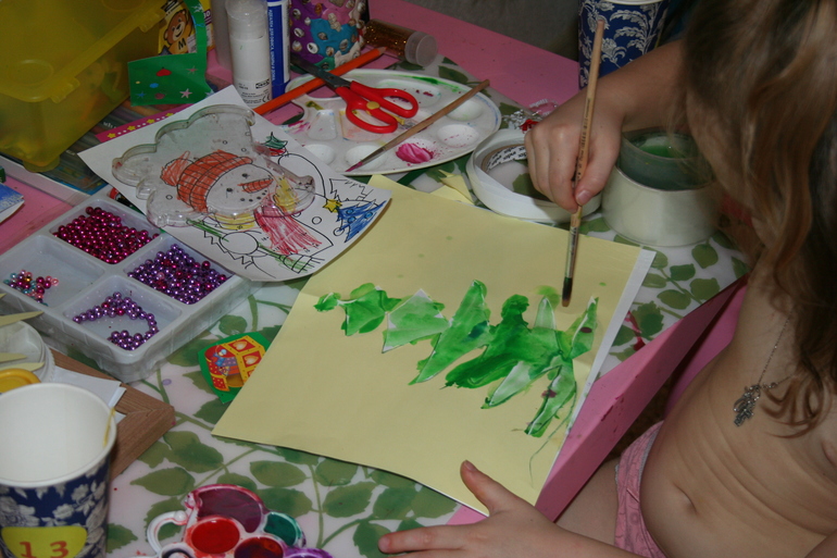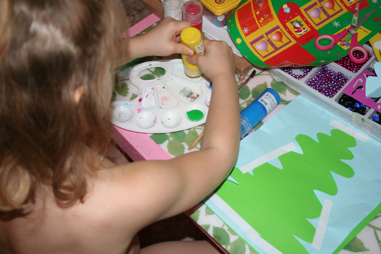 А вот делать гирлянду и другие бумажные праздничные игрушки помогала очень охотно.