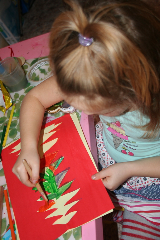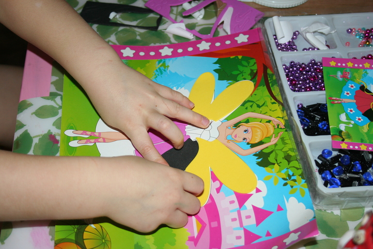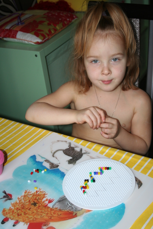 Еще одно интересное занятие, которым теперь Камилка занимается совершенно самостоятельно - это поделки из мозаики. Спасибо Наталье за идею с контуром, как я сама не додумалась :-)