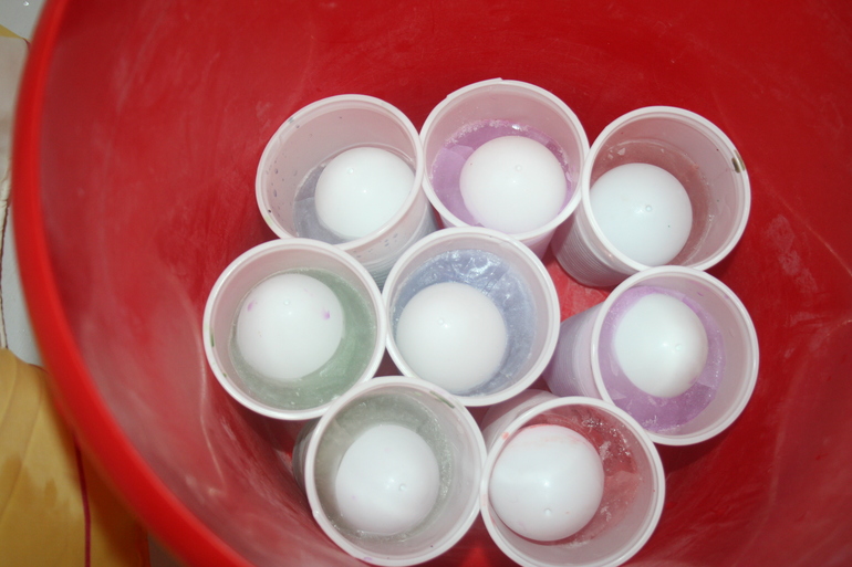 Начали мы делать фонарики, но пока ничего толкового не вышло. Хотя синельная проволока смотрится довольно живописно, но, а из крашеного льда, наверное, что-нибудь ледяное построим и подсветим :-)