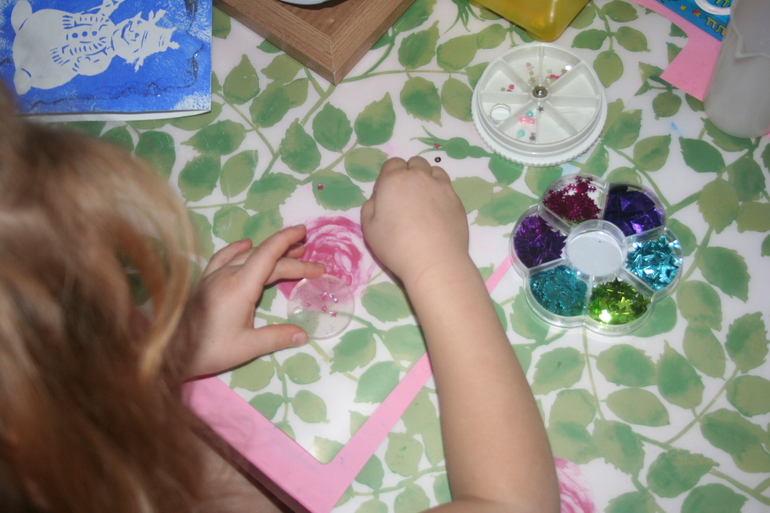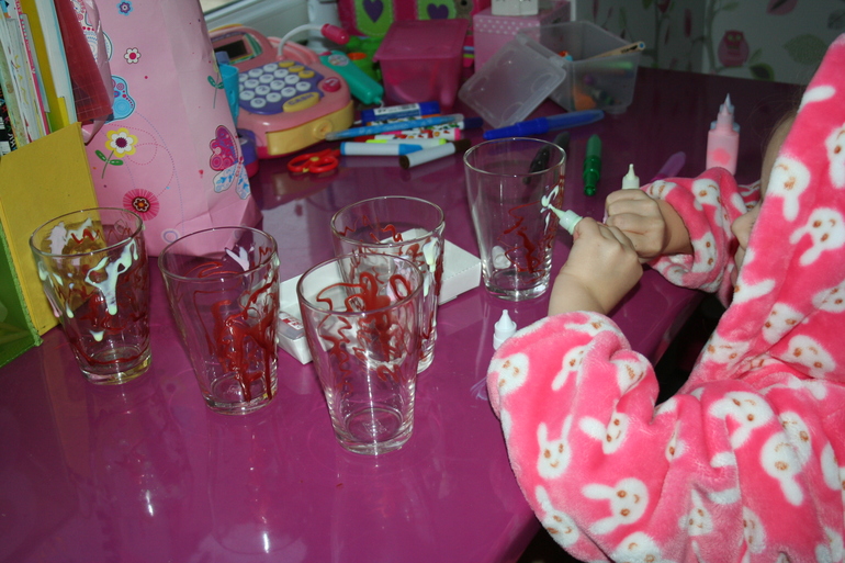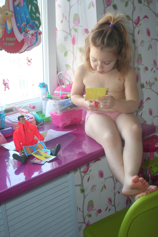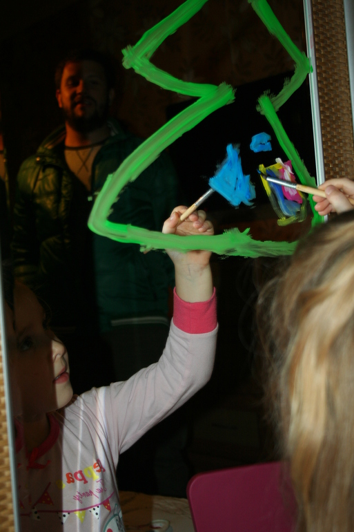 Кстати, думала Камилка будет в восторге от идеи раскрасить зеркало, но она чуть-чуть повозилась, задала стиль и убежала :-)