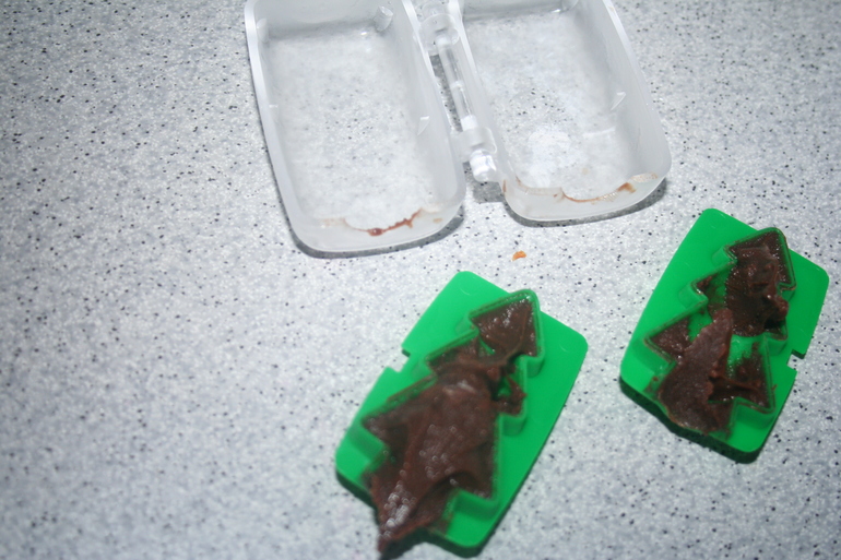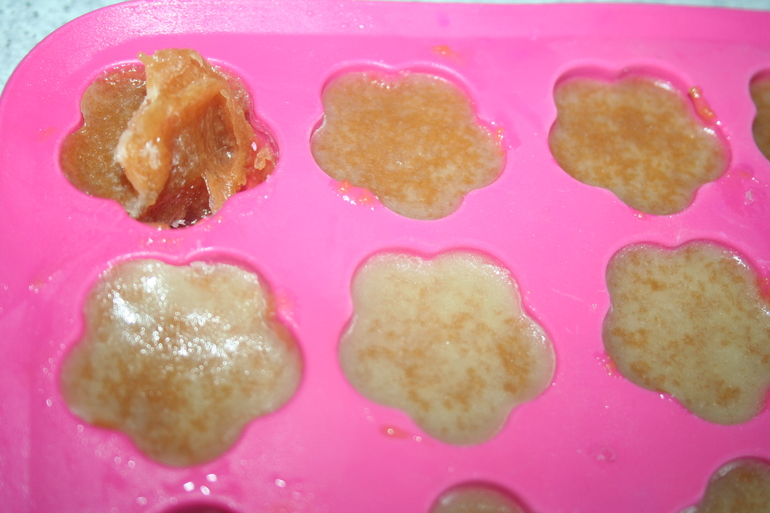 Так не удались ириски, которые совершенно невозможно было достать из "домиков" ...