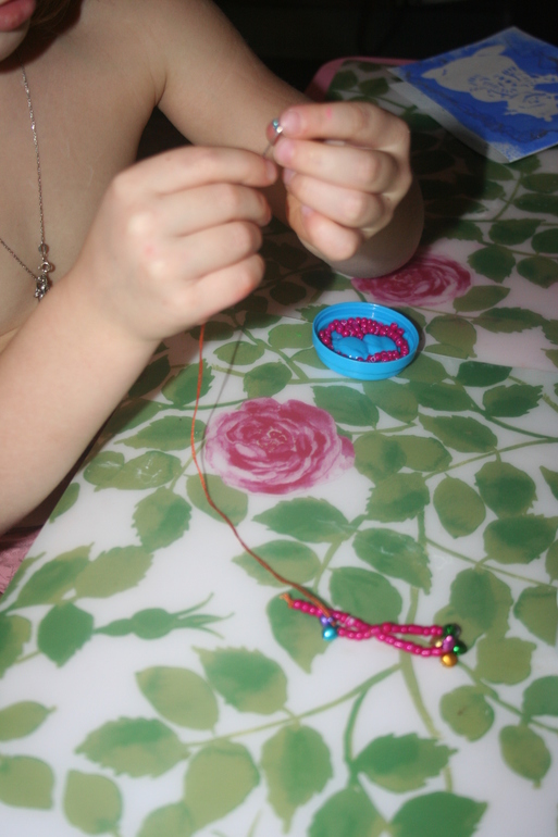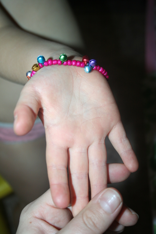 Особое внимание на этой неделе мы уделили МЕЛКОЙ МОТОРИКЕ, творя украшения из бусин и колокольчиков. Идею подсмотрела здесь :-)
