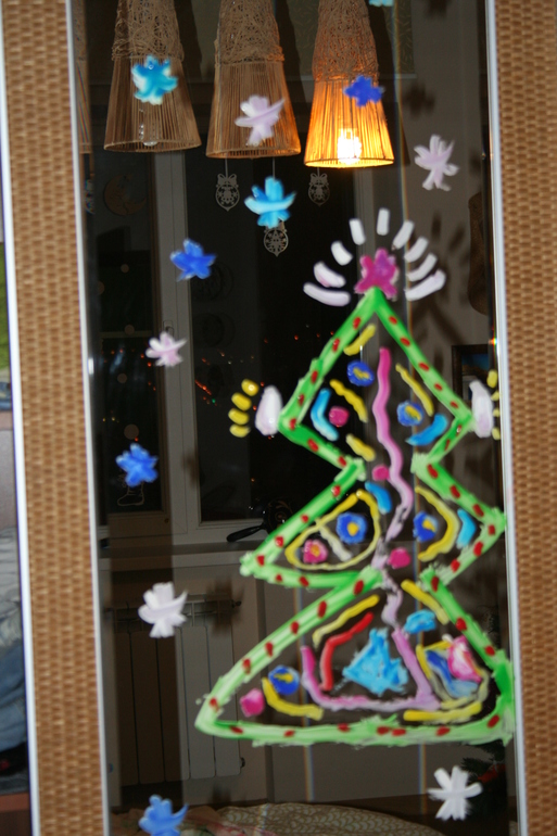 Эти яркие елочные украшения станут частью новогодних подарочков для Каминых друзей. А дома у нас пока с УКРАШЕНИЕМ туго, почти ничего не сделала с прошлой недели, только зеркало разрисовали.