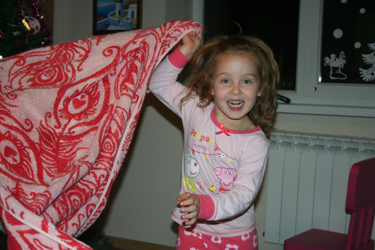 А возле Каминой кроватки появился вот такой светящийся Санта! И пусть первые дни он не помогал засыпать, а только мешал, зато чувствуется Новый Год уже близко :-)