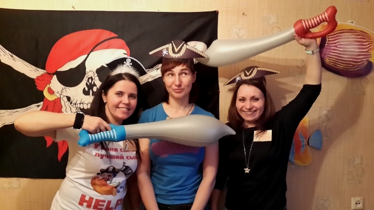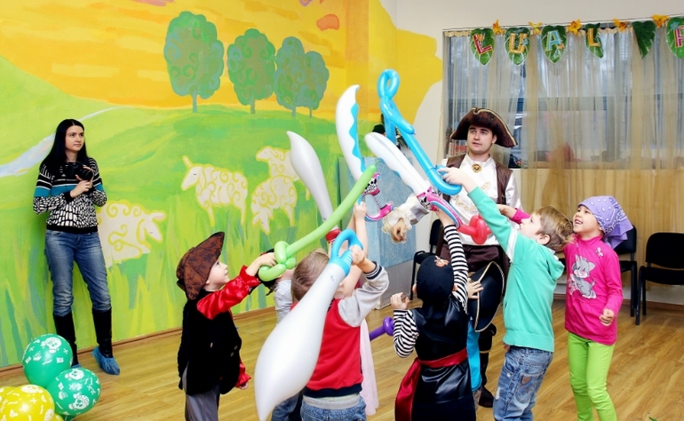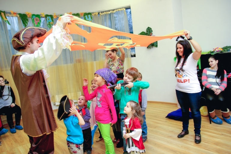 С залом тоже было несколько минусов,сняла фитнес зал в Ледовом дворце у нас у детского центра,в итоге куча условий за безумные деньги и никакого сервиса( Разрешили приходить максимум за 20 минут до начала,пришли и увидели отсутствие света во всем крыле,морозильник в зале и холле,то есть даже не удосужились протопить помещение к началу ДР,маты на полу,убранные при нас и запихнутые просто в угол зала,вообще в зале по углам бардак( Сам зал большой и красивый,что и подкупило, плюс обещали поставить отдельно в холле шатер,где накрываются столы для чаепития,что удобно,так как столы не мешают бегать и резвиться детям) на сайте написано,что шатер украшается шарами и цветами,цветы вроде в паре углов были,шаров не было! В итоге в зале мы сидели с обогревателями,а в холле у меня за час остыла вся вода и мы эти обогреватели перетаскивали,чтобы протопить еще и шатер,все эти походные условия за свои немалые деньги,а организаторы не разу не пришли и не поинтересовались,нужно ли нам что нибудь и все ли в порядке,условия арендодателя были:придти со своими мусорными пакетами (!!! за 2500 в час они пакеты не могут купить за 30 ре) и убрать все самим вплоть до мусора на полу (хорошо что не помыть еще полы им),это все без украшения зала и накрытия стола стоило 2500 ре в час (это со скидкой еще,просили 3000 ре,благо я там с сыном занималась и мне скидку сделали!),никаких хлопушек в зале,мыльных пузырей в тазиках в зале,дети должны быть спокойными,у них видите ли там зеркала....это помещение сдается для детских ДР,для примера,подружка в августе в другом детском центре снимала за 1200 ре в час,так ей все накрыли,все убрали и вообще все время были арендатор на подхвате и убирал грязную посуду по мере ее появления,за 1200 ре дополнительно еще и украсил весь зал шарами! мне просто далеко до этого центра пешком,а машины нет и я понимала что два ДР не осилить с таким растоянием,пришлось искать близко к дому) короче девченки подумайте,прежде чем там снимать зал,я имею ввиду именно фитнес зал,но и само отношение заведущей ни в какие рамки,общается так,что получается МЫ ей должны все и вся,а не она нам должна сервис и условия нормальные) это немного о грустном,в целом пиратская детская вечеринка у нас удалась)