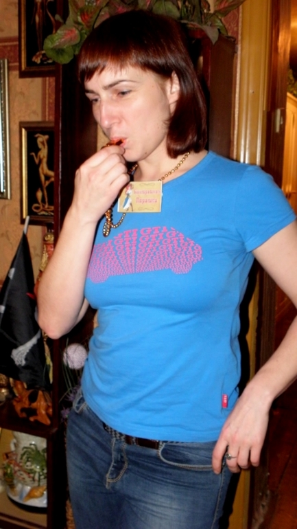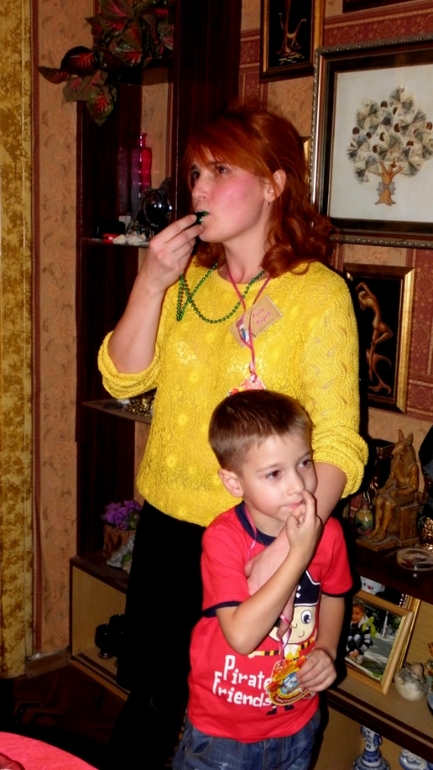 11) После этого сразу же провела женский конкурс под названием "Свистать всех наверх",суть в том,что выдаются участницам свистки и нужно насвистеть мелодию так,чтобы гости могли ее распознать) Перед этим участник должен сказать ведущему,что за мелодия будет,чтобы не схитрил если что,а то кивнуть что правильно угадали можно в любой момент) Оказалось что это не так легко,но вполне смешно получилось) Победителю вручила набор Счастливый рубль,обыграв это так: есть пословица"Не свисти,а то денег не будет",так вот с этим счастливым рублем пусть денежки водятся всегда) в наборе была еще ручка с надписью "Для великих мыслей") А проигравшей подарила свисток,тренироваться)