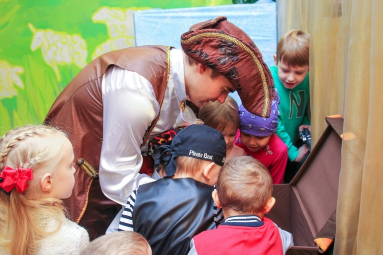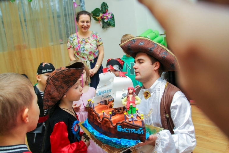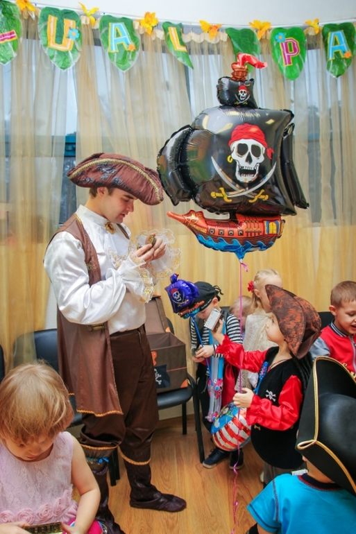 Детки пришли все,было 14 детей не считая мам) Конечно же не обошлось без накладок,в целом я и гости остались довольны,дети самое главное довольны,а небольшие минусы можно и пережить) В кратце:наш аниматор заболел,узнала я об этом в последний день,оч расстроилась,так как видела его работу несколько раз и хотелось видеть именно его на нашем ДР,фирма предоставила нам замену, посмотрев портфолио актера и положительные отзывы о нем,я успокоилась) В принципе справился он хорошо,детей завлек сразу же,программа была интересной,я у других аниматоров такой программы не видела,все как то скучнее у других было) Так как его поставили на замену в последний момент,были косяки с реквизитом,так как его собирает склад,к аниматору нет претензий,но немного напрягло все таки: приехал без музыки,все ДР было в тишине,я зная что аниматор заболевший всегда приезжал с приемником даже не учла музыку,расчитывая на аниматора( Забыли положить ему парик,был похож больше на лакея наш пират) В реквизите не хватало корабля,если бы не наш надувной,который мы купили случайно и для антуража,дети бы просто качались за аниматором стоя за спиной без ткани и другого реквизита( Слава Богу что была лодка у нас)