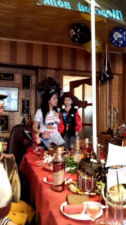 В общем все прошло отлично,я провела и организовала все,что подготовила и задумала,гости в восторге,для них было много сюрпризов на этой вечеринке,от оформления квартиры до приятного комплимента на пиратской карте на стене с их фото,в общем я довольна всем,нисколько не жалею потраченного времени, сил, нервов и конечно же финансов,люблю когда праздники проходят так,что есть что вспомнить,хорошо бы еще всегда позволяли финансы и силы проводить такие праздники чаще)))) Надеюсь мои идеи вам пригодятся и было интересно виртуально побывать на нашем ПИРАТСКОМ ПЯТИЛЕТИИ!!!