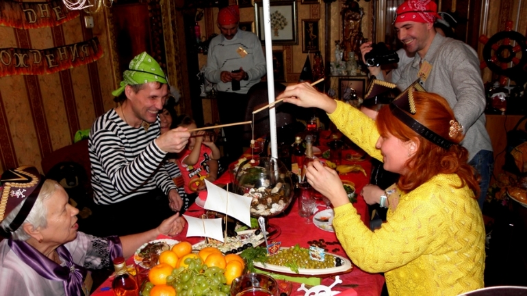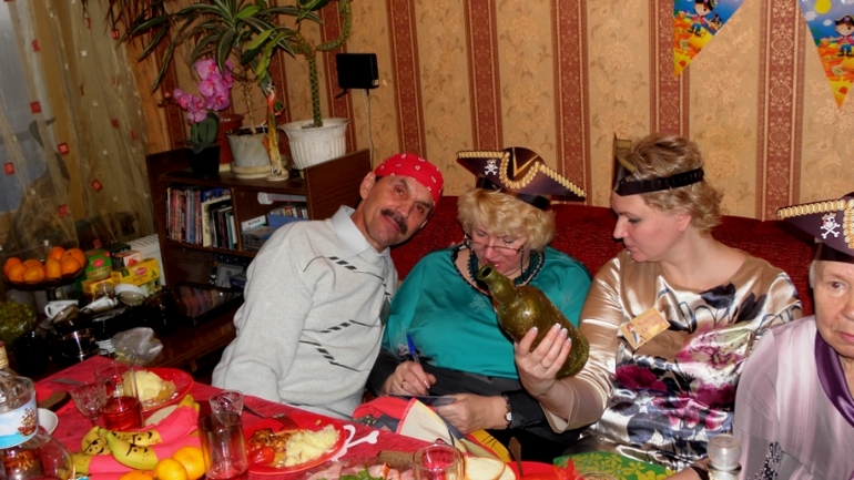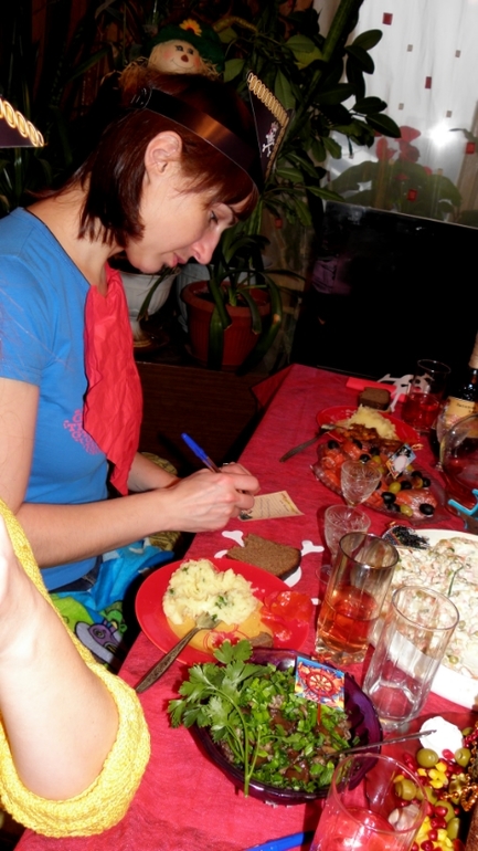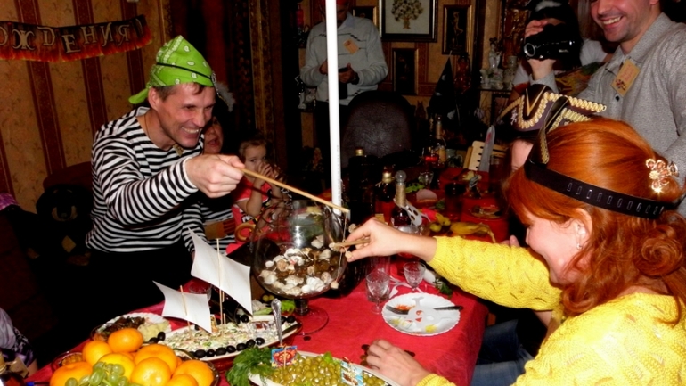 Галопом по Европам мы прибрались после детского ДР и понеслись домой встречать гостей,которые заходили уже вместе с нами в итоге) Времени у меня на отдых/перекус/собирания с мыслями не было получается,нужно было уже начинать праздник и развлекать гостей) Благо стол накрыт,спасибо маме,квартира украшена заранее,то есть мне только собраться с силами и начать оставалось,что я быстренько и сделала) Собрав всех за столом,а это 15 человек без детей,я начала нашу Взрослую Пиратскую вечеринку)
