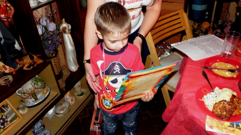 12) Ну а завершили мы нашу Пиратскую вечеринку Фантами,Матюшка сам брал у меня фант и вручал тому,кому считал нужным.Затем следил,чтобы обязательно все исполнили написаное,получилось оч смешно и сыну очень понравилось) Бабушка у нас говорила как попугай,а прабабушка делала зарядку старого пирата))) дедушка у нас изображал одноногого пирата,а молодежь просто корчила смешные и страшные рожицы,в общем старичкам достались самые сложные задания и мы все от души посмеялись и повеселились))) Советую вам фанты провести,но чтобы ребенок сам решал кому его дать и смотрел,что же там такое получилось в итоге)