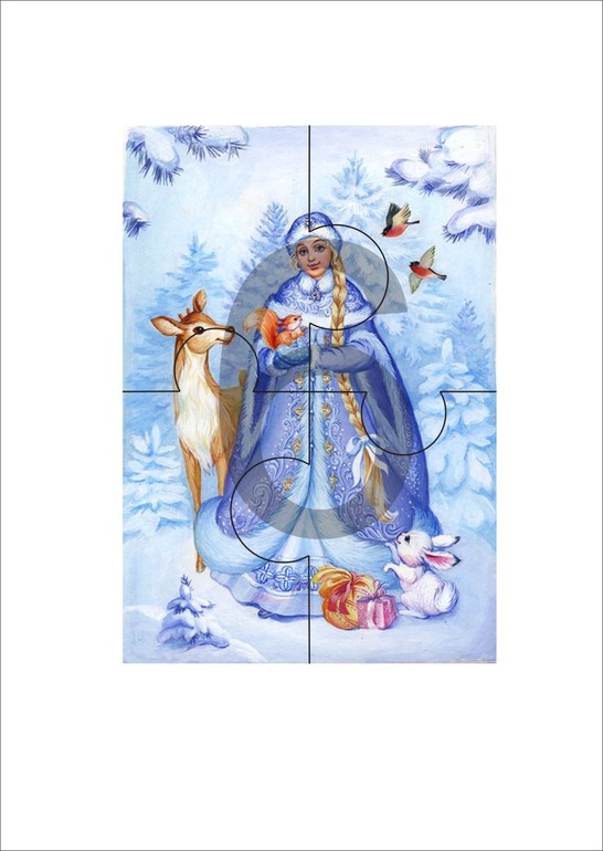 Собираем пазлы, звоним деду Морозу (Феде, он уже должен ждать в подъезде). Тот говорит, что сейчас приедет, только оленей пришпорит.