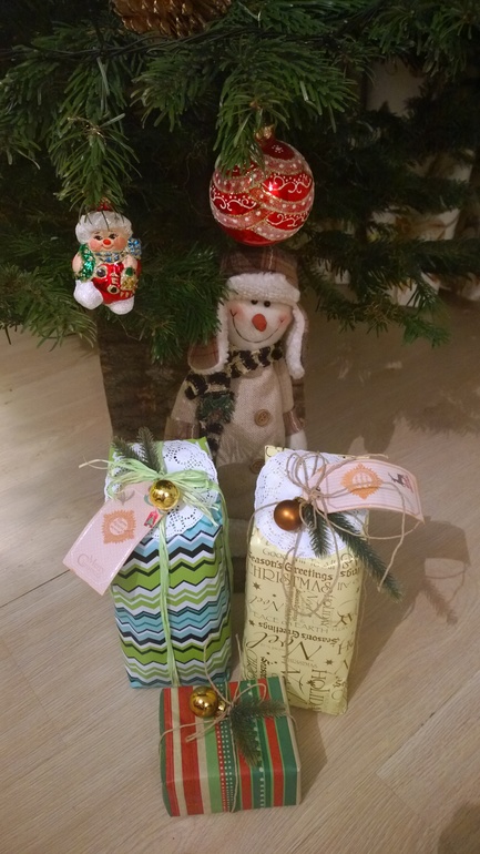 Очень здорово упаковали! И просто и очень стильно одновременно. Обязательно возьму на заметку, на следующий год. Я в этом году обошлась просто подарочными пакетами, но упакованные подарки смотрятся куда лучше и интереснее.