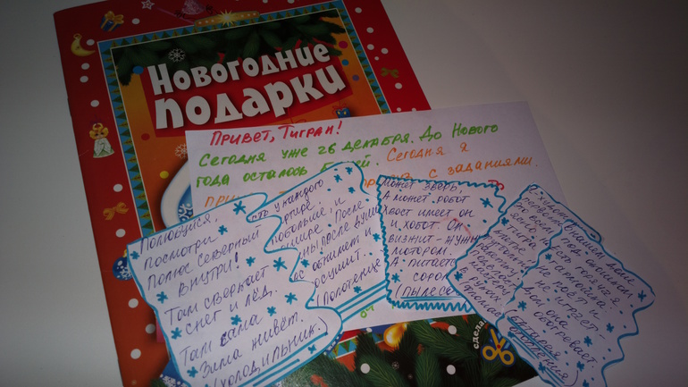 Дед Мороз приносит нам небольшие сюрпризы, которые Тигран получает не просто так, а предварительно пройдя мини-квест или отгадав загадку:![]()