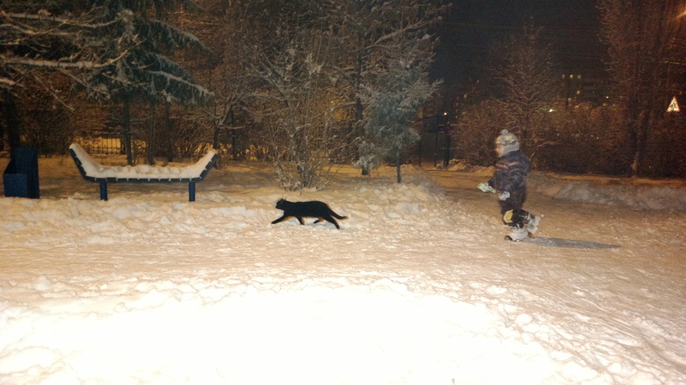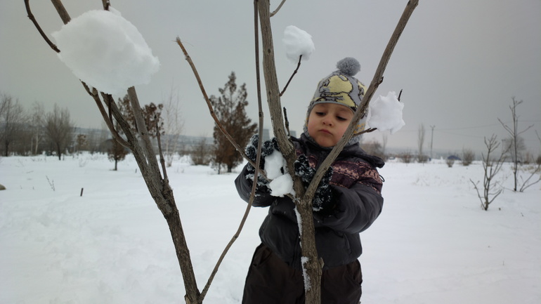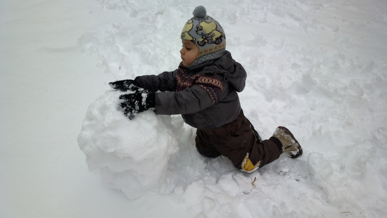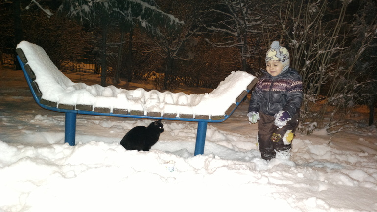 Зима порадовала снежком и мы вышли во двор:
