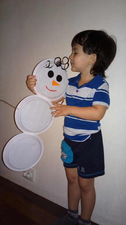 Снеговик из пластиковых тарелок:![]()