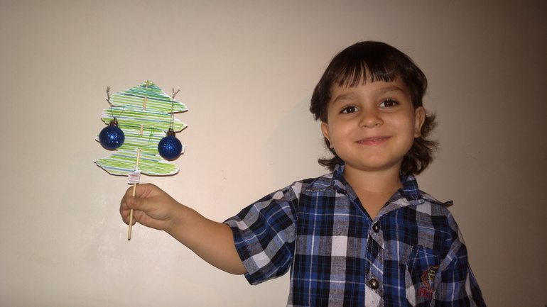 Елка из картона, красили самодельными объемными красками:![]()