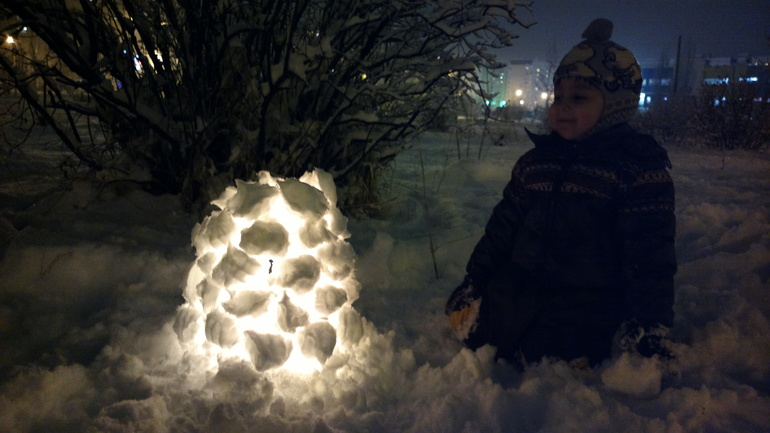 Волшебный снежный фонарик. Всей семьей делали это чудо:![]()