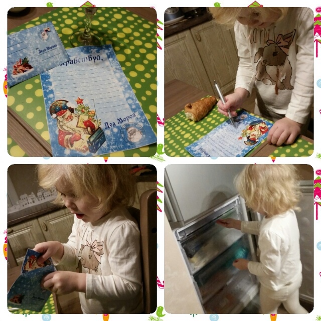 Здорово получилось! ))) Какие полезные желания. У нас минимум просит штаб-квартиру робокаров (папа в очередной раз будет ругаться, что игрушки ставить некуда).А про то, что письма надо в морозилку класть, я впервые от мужа услышала )) Мы так не делали в детстве. Я даже и не помню, писали ли письма и куда отправляли или просто родителям говорили, что хотим.