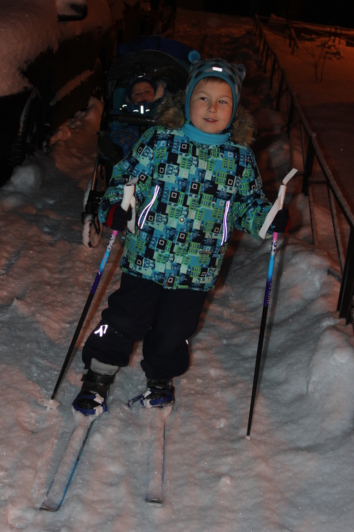 Славуша получил наконец долгожданные лыжи. И мы их кстати уже опробовали...