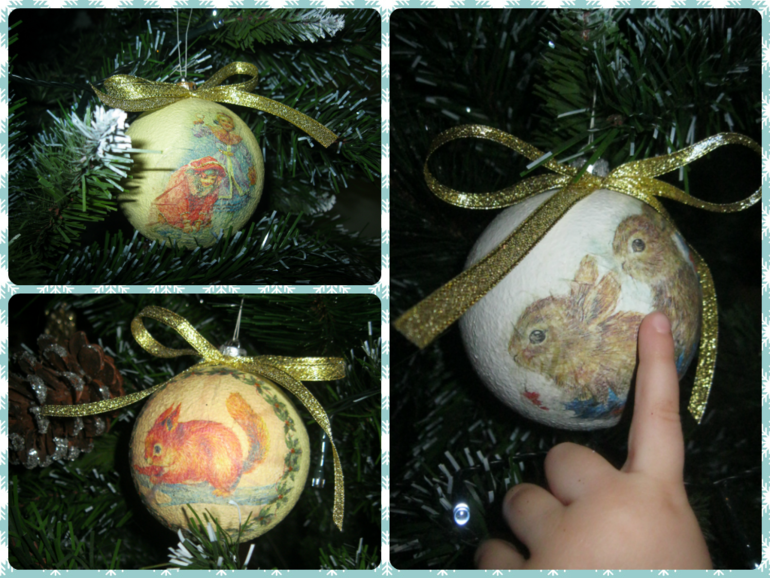 Над несколькими шариками я немного потрудилась. Так как руки чешутся сотворить что-нибудь необычное)) Так получились такие вот декупажные шарики: