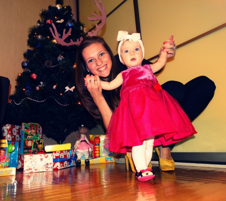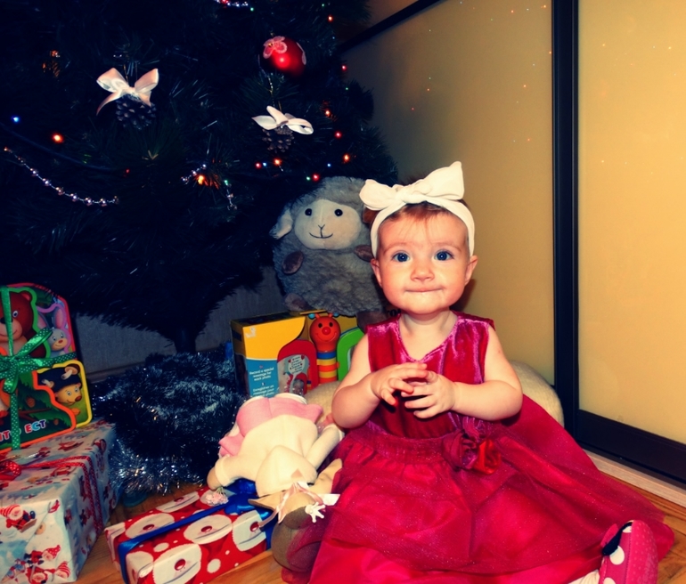 1 января проснулись ближе к 10,даже выбрались на улицу)и больше ничего не делали...валялись,досыпали и доедали).Ещё распаковывали подарки,Соня была рада всем своим подаркам,каждая новая игрушка вызывала восторг и сразу отправлялась "на пробу" в рот)В планах была поездка в гости,но наша карамелька покашливала (а там было двое детей),решили не ехать....а перенести на попозже!