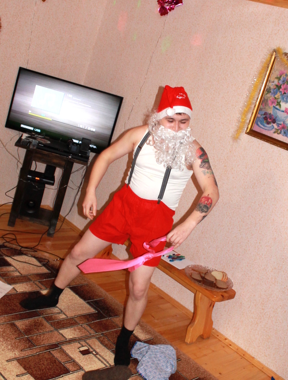 И вот к нам на праздник пришел современный плохой дед Мороз))вслед за ним пришла и плохая развратная снегурочка))) чулочки...сигарета...короткое платье, всё как и положено)))