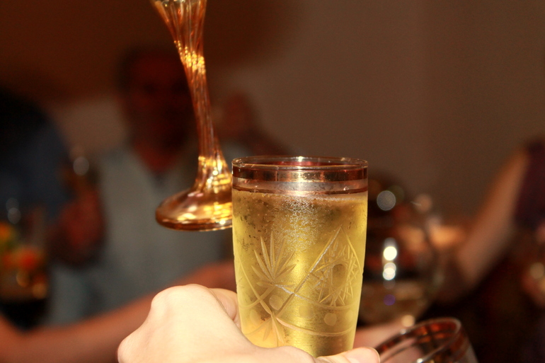 заставили пить до дна вино ,чтобы все желания,загаданные гостями сбылись)))