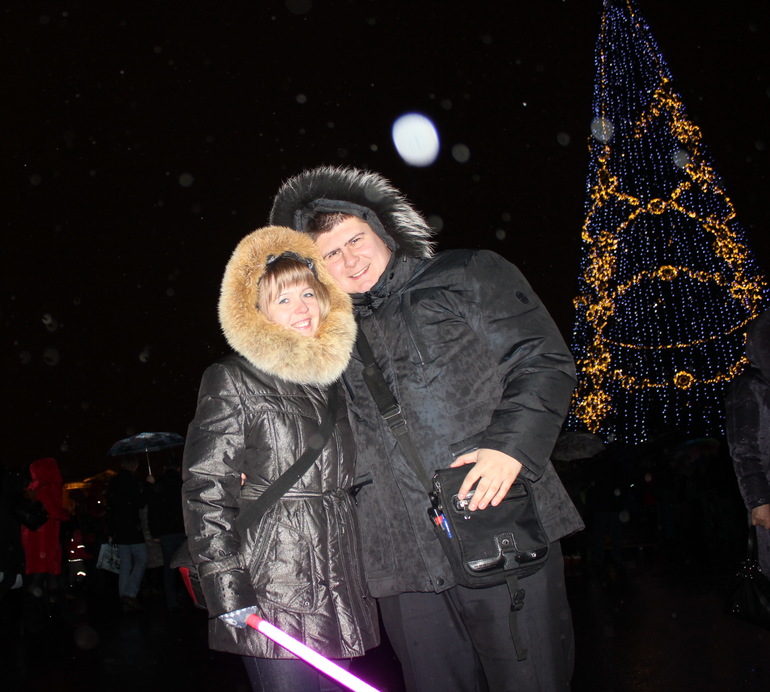 Погода зимняя у нас практически отсутствовала в первые числа нового года... Вот и в этот день на шоу мы стояли под очень сильным дождем... Это нечто.... 2-е января и дождь... Тем не менее это не испортило нам настроения... Просто уже какой год меня удивляет, что происходит с нашим климатом... Уже и зимой мы ходить должны с зонтами.... Темочка наш вообще плохо понимал что происходит... мы закутали его в дождевик и только носопырка торчала... А мы ютились под зонтом...