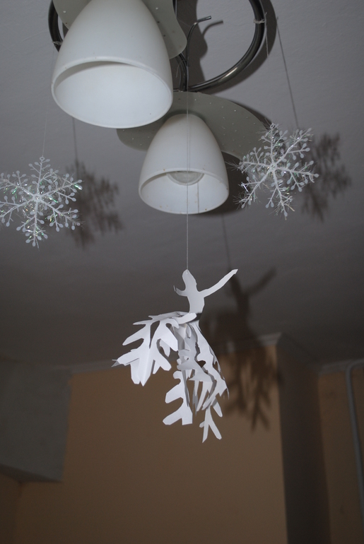 Ну и практически предпоследней нашей общей поделкой была балеринка,каждое утро просыпается и бежит к ней,что бы на нее подмухать и пропеть ля-ля-ля(тоисть она танцует).Ну и последний новогодний штрих стал венок на дверь,занял минимум времени и очень красиво смотрится.