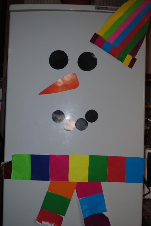 Первое что у нас получилось новогоднее в доме,это снеговик на холодильнике,тоже столько восторга в ребенка,она его "Синий" называет.