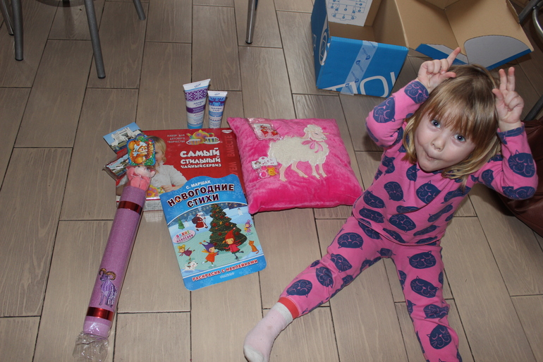 Огромное спасибр нашей снегурочке http://www.babyblog.ru/user/lenta/kisska707 Елене. Приятно было получить послочку из Белорусии. Посылку припрятала и положила под елку. Дочка долго ходила вокруг нее и не могла понять,что это подарок))) ну,типа стоит коробка,и че? мы с мужем и так и эдак ей намекали,но доходило до нее реально долго.Зато наблюдать за этим всем было забавно.