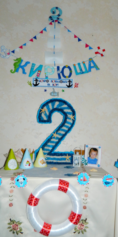 День рождения ДетскийКак быстро летит время...только вроде годик отмечали,а тут уже и 2!Решили опять отмечать дома,т.к в домашней обстановке ребёнок пока чувствует себя комфортнее!Пригласили всех родных и близких и отправились в морское путешествие!!!А теперь много фото: