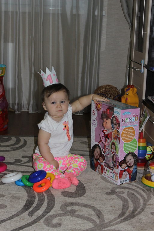 Еще подарили ослика-прыгуна, фонтан для игры в ванной, ксилофон, говорящую куклу и пару деревянных игрушек, стол и стул из Икеи. Пока во всё играем, на стул даже научилась залазить. А снего и на стол. Только Лего-дупло собрали детки постарше и поставили на высокую тумбу, куда Маша пока не добралась.